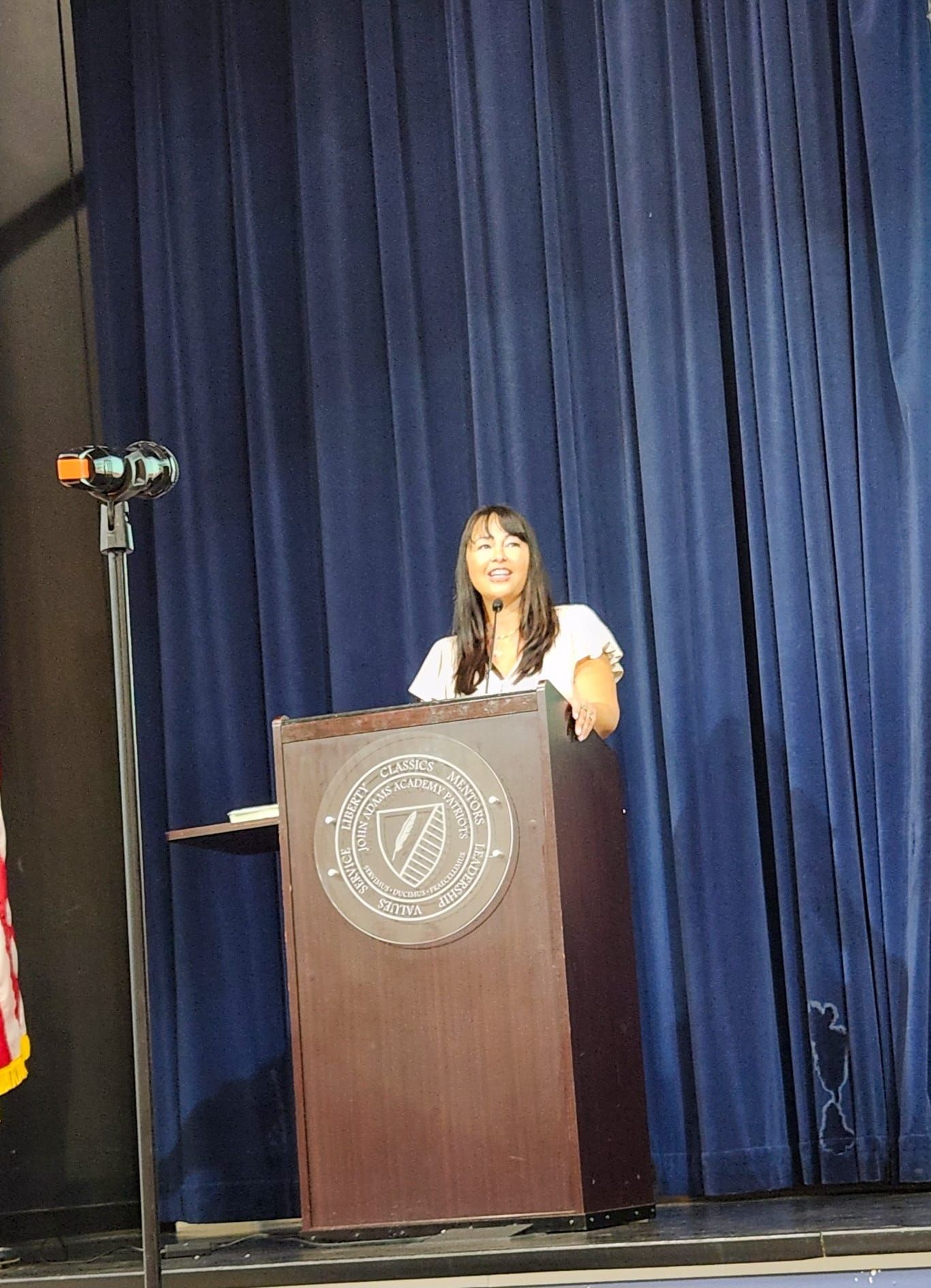 Club president Jean Pagnone was honored to be the keynote speaker at John Adams Academy Constitution Day assembly.