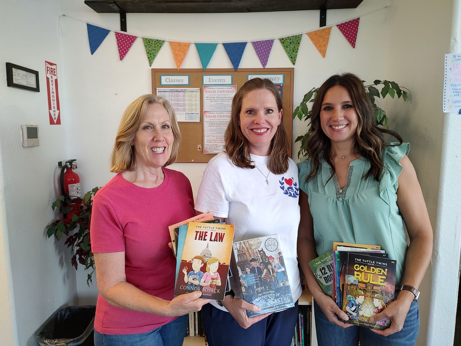 Literacy and Education Committee members Leslie Robinson and Krystle Erspamer donating books to Love of Learning in Rocklin.
